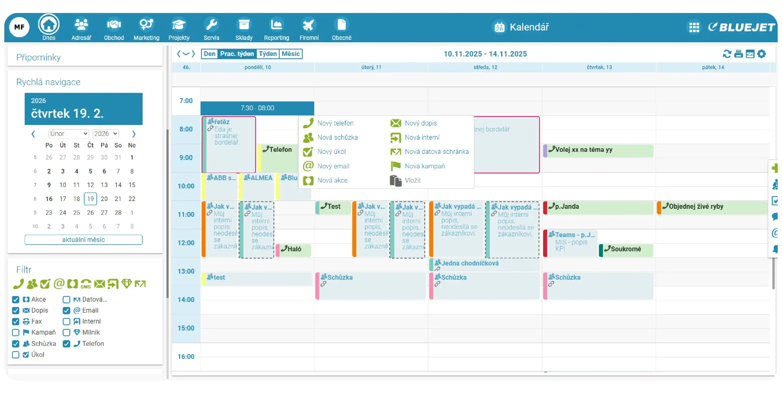 Na rozdíl od běžných CRM systémů se BLUEJET přizpůsobuje procesům zákazníka – ne naopak. Díky modulární architektuře, workflow a otevřeným integracím může růst spolu s firmou a reagovat na její specifické potřeby.